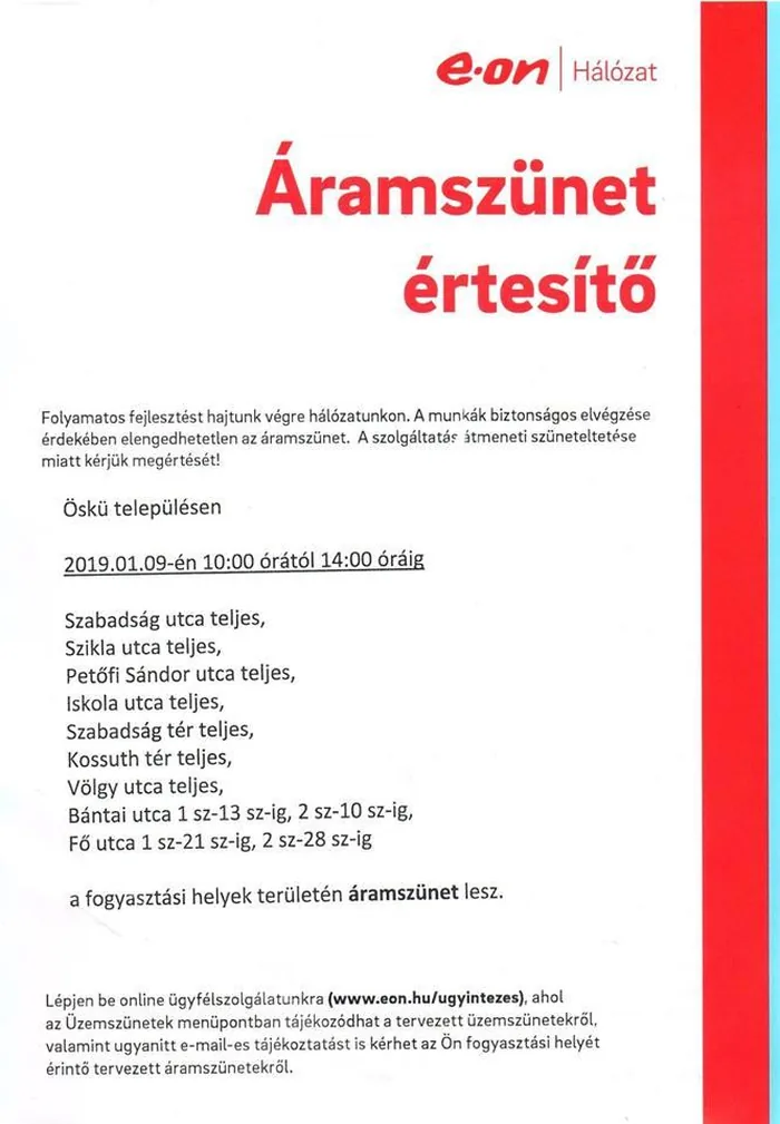 Folyamatos fejlesztést hajtunk végre hálózatunkon. A munkák biztonságos elvégzése érdekében elengedhetetlen az áramszünet. A szolgáltatás átmeneti szüneteltetése miatt kérjük megértését!