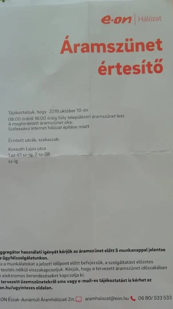 'Áramszünet értesítő' cikk borítóképe