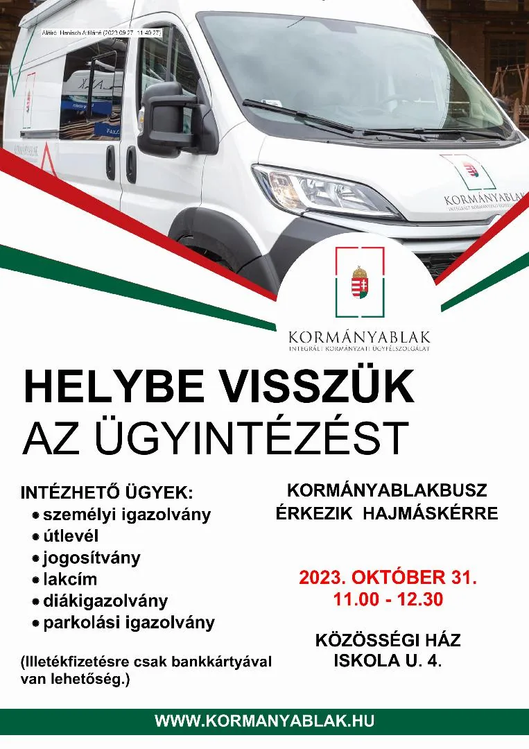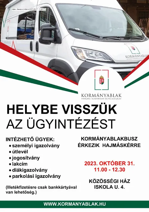 Kormányablakbusz érkezik Hajmáskérre
