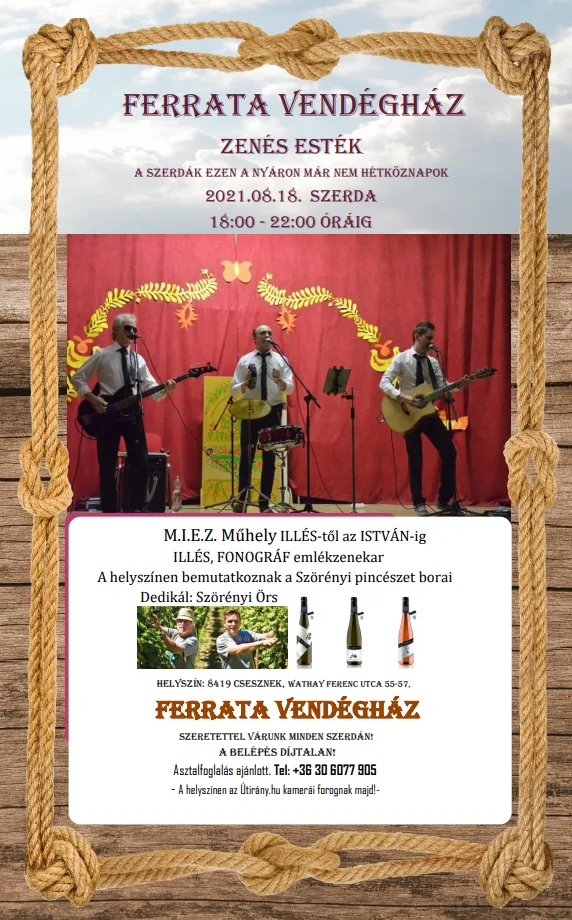 Zenés estek a Ferrata Vendégházban, Cseszneken