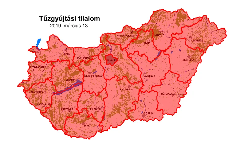 Több megyében tűzgyújtási tilalmat rendeltek el, melyet 2019. 03. 15-el megszüntettek...