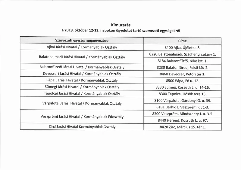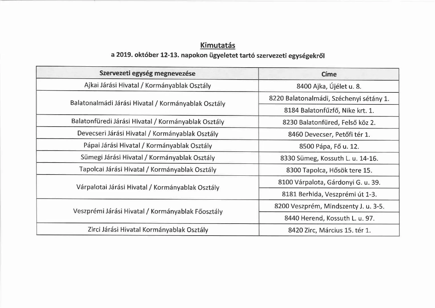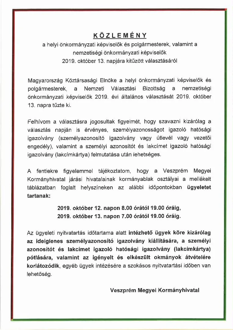 Veszprém Megyei Kormányhivatal választások előtti ügyeleti rendje