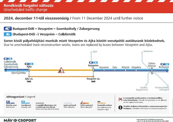 A 20 sz. [Budapest–] Székesfehérvár–Szombathely vasútvonalon bevezetett rendkívüli forgalmi változással kapcsolatban az alábbi tájékoztatást küldjük.