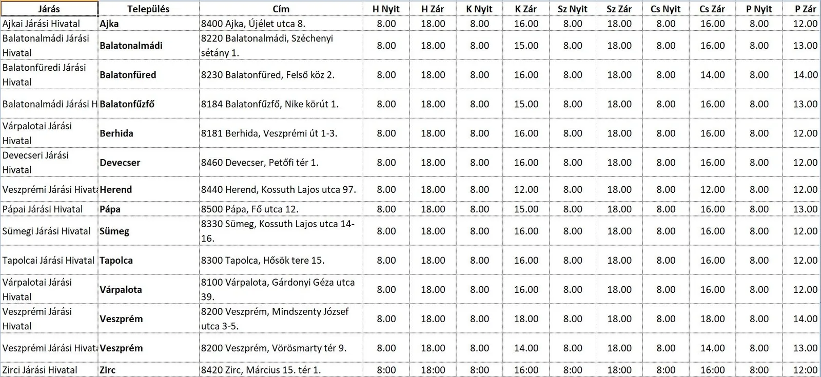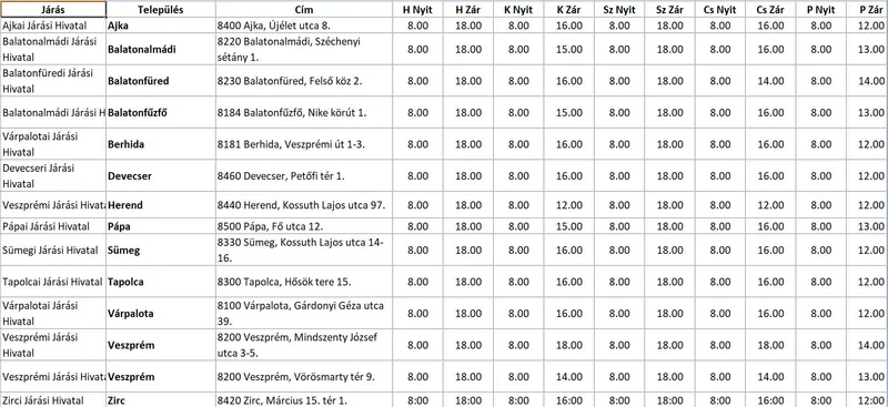 A Veszprém Megyei Kormányhivatal 2020. július 6. napjától