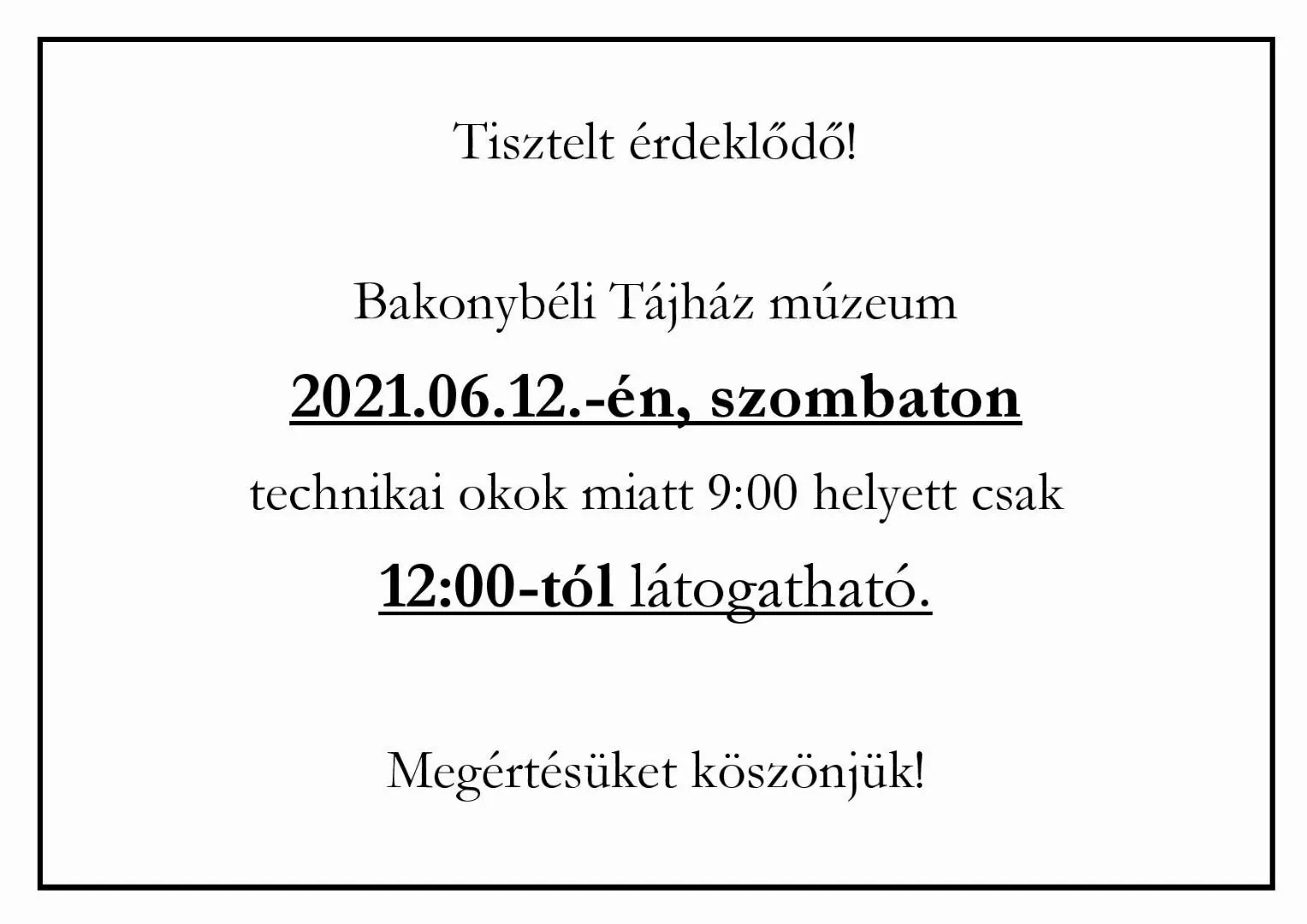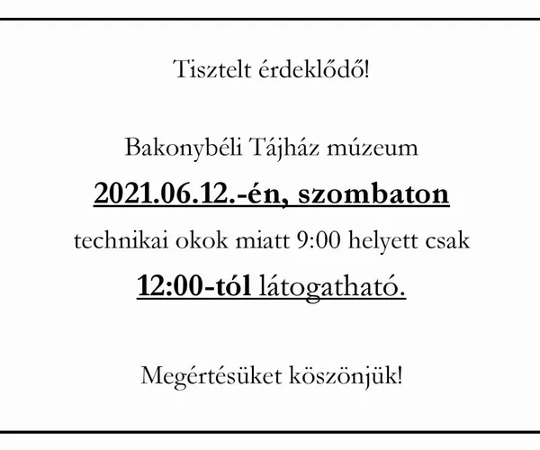 2021.06.12.-én,szombaton technikai okok miatt 12:00-tól látogatható!