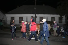 18,00 óra, elindultak a felvonuló csoportok. A falu apraja-nagyja, lámpással a kezében egy lovas vezetésével körbe járta a teret.