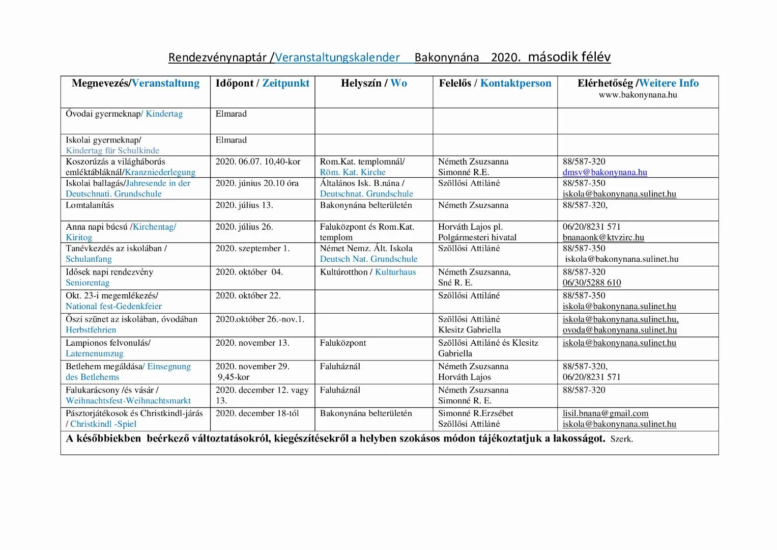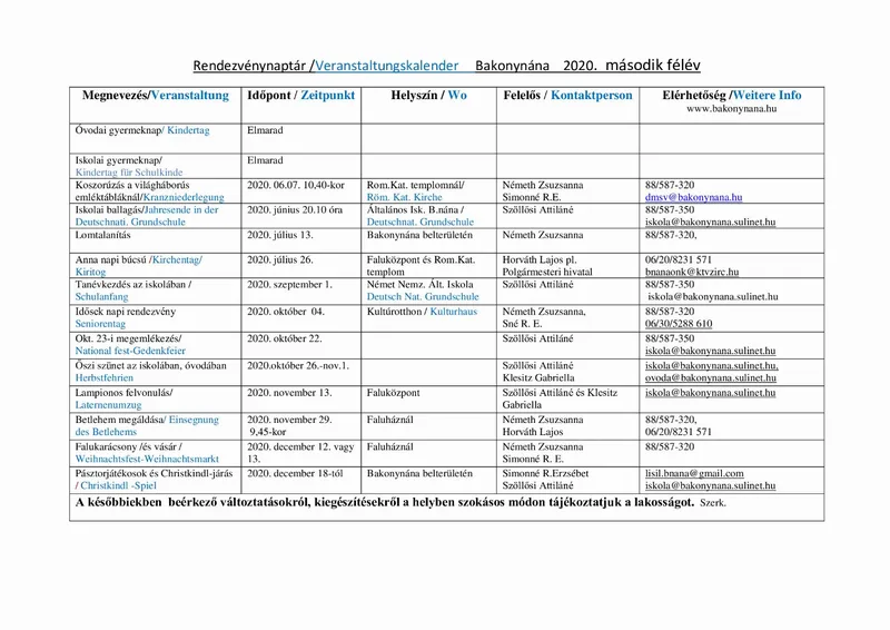 Rendezvénynaptár / Veranstaltungskalender