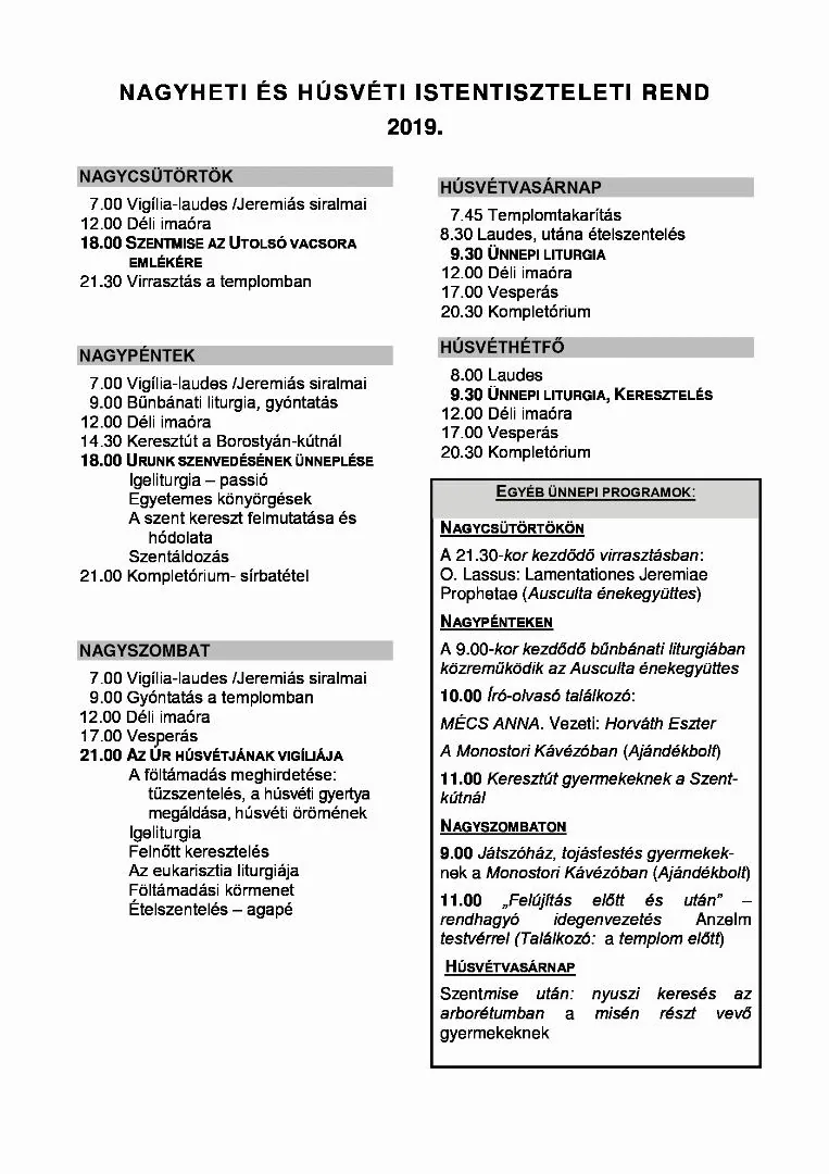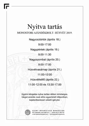 Nagyheti és Húsvéti Istentiszteleti rend és nyitva tartás a Szent Maurícius Monostorban