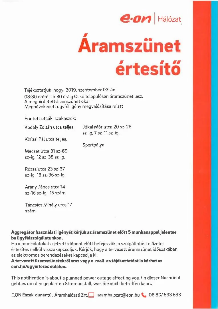 Áramszünet értesítő
