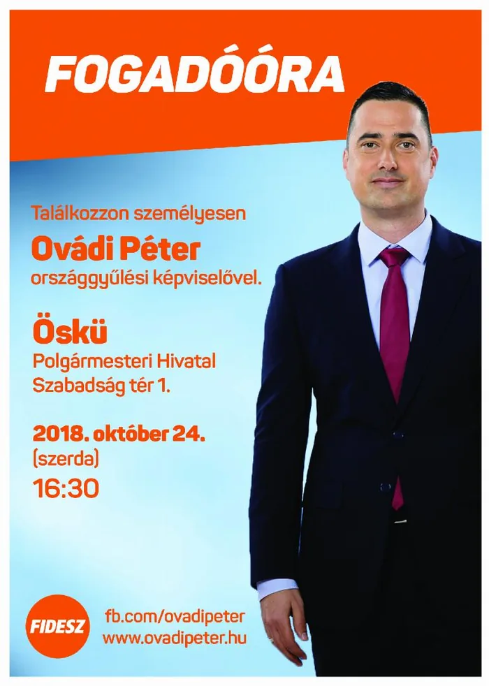 2018.10.24-én (szerda) 16.30 órától fogadóórát tart Öskün.