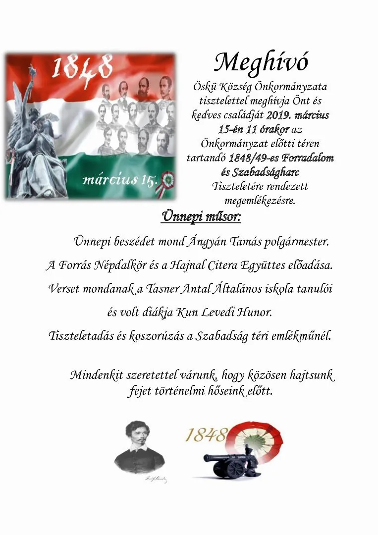 1848/49-es Forradalom és Szabadságharc Tiszteletére rendezett megemlékezésre.
