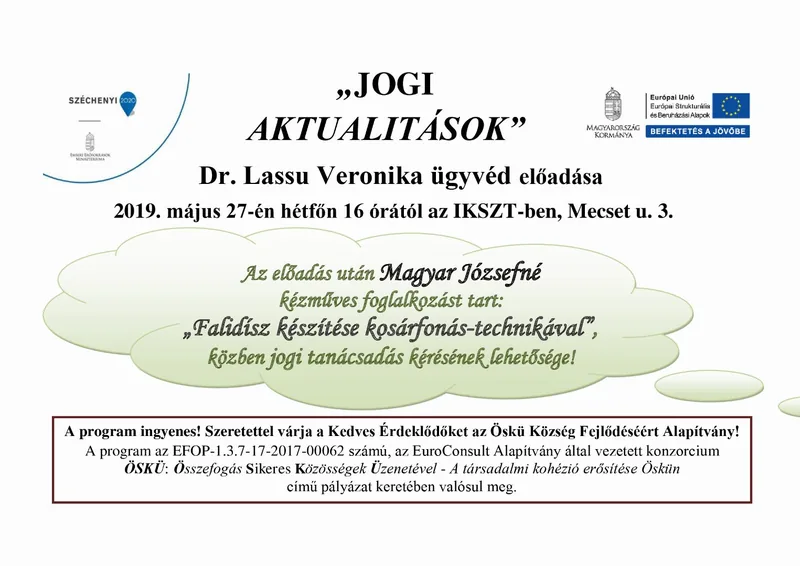 „Falidísz készítése kosárfonás-technikával”,  közben jogi tanácsadás kérésének lehetősége!