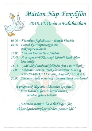 - 19.00 Libanapi vacsora (csak előrendelésre 11.03-ig, a 06-20-446-1131 t.sz.-on , Anginál / 2500,-Ft)