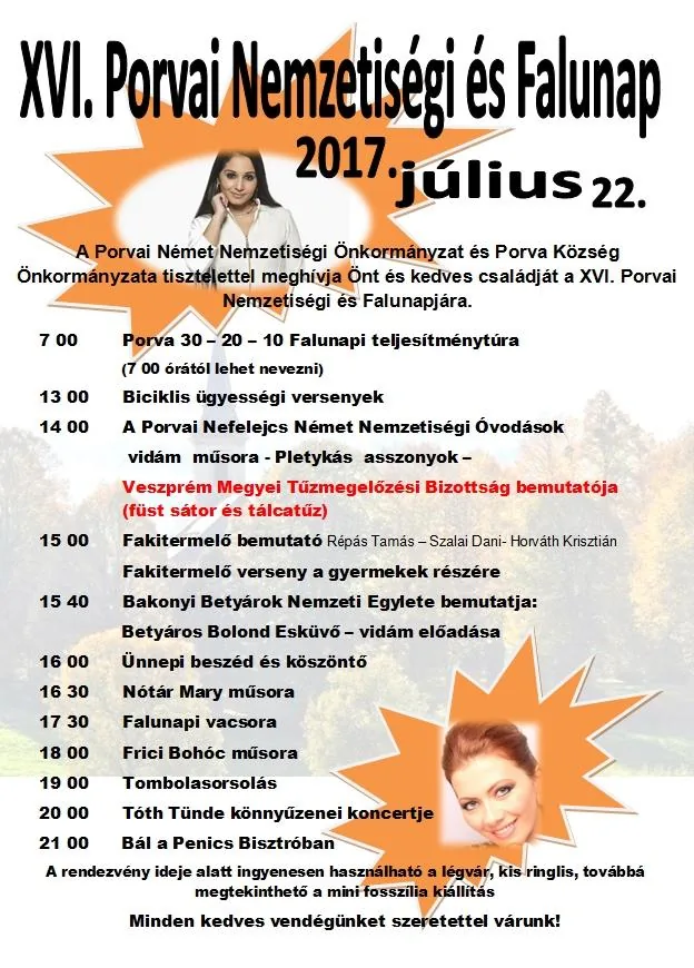 Éhesek szomjasak nem maradhattunk, hisz finom volt a lángos, a pörkölt, a melegben a sör és a házi készítésű bodzaszörpös limonádé is elmaradhatatlan volt. A reggeli órákban a teljesítmény túrákkal elkezdődött a nap. A szórakoztató programokat a mi kis ovisaink kezdték, amire igen nagy szeretettel készültek, ezután folyamatosan nyüzsgött a színpad és környéke. Majd hajnalig tartó buliban szórakozhattak tovább a résztvevők a Penics bisztróban.