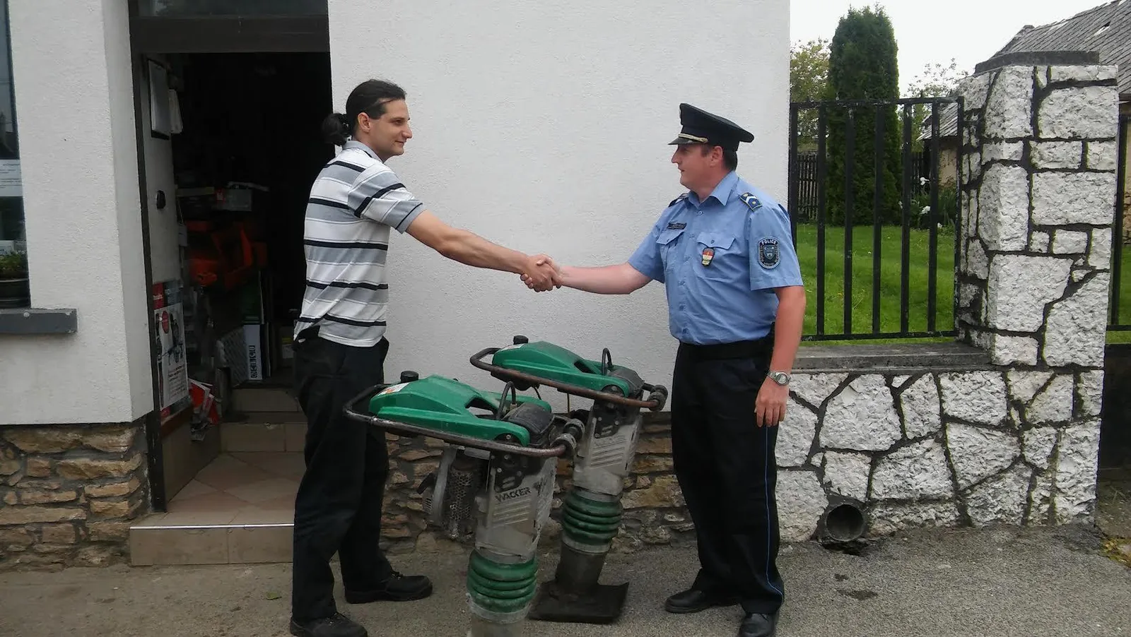 A széleskörű rendőri adatgyűjtés eredményeként beazonosították a bűncselekmény elkövetésével gyanúsítható 35 éves csabrendeki férfit és fiatalkorú társát. Előállították őket a Veszprémi Rendőrkapitányságra, ahol gyanúsítottként hallgatták ki őket. Az ügyben eljáró nyomozók a gyanúsítottak által a bűncselekmény elkövetését követően értékesített gépek közül a döngölőbékákat felkutatták, az eladás előtt álló utánfutó pedig egy rejtekhelyről került elő. A megtalált tárgyakat lefoglalták, azokat a Zirci rendőrőrs körzeti megbízottja, Lanczinger Péter r. zászlós adta át 2017. május 23-án a sértett képviselőjének.