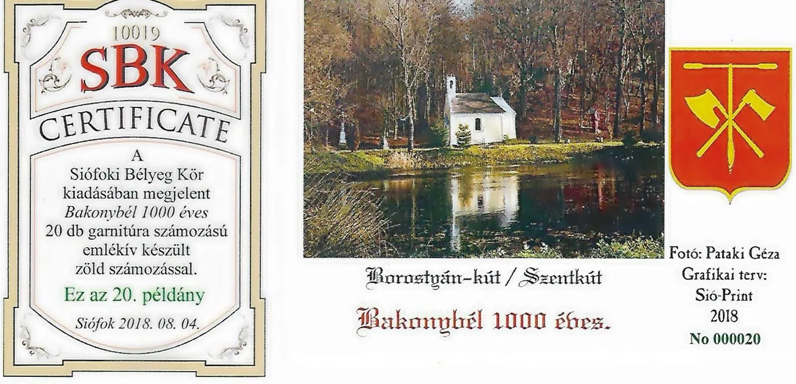 Nyomdai kivitelezés: Jókai Mór Városi Könyvtár Pápa. Hátoldalán egy kis leírás található Bakonybélről, valamint a fotón látható Borostyán-kút / Szentkút/ ismertetése.
