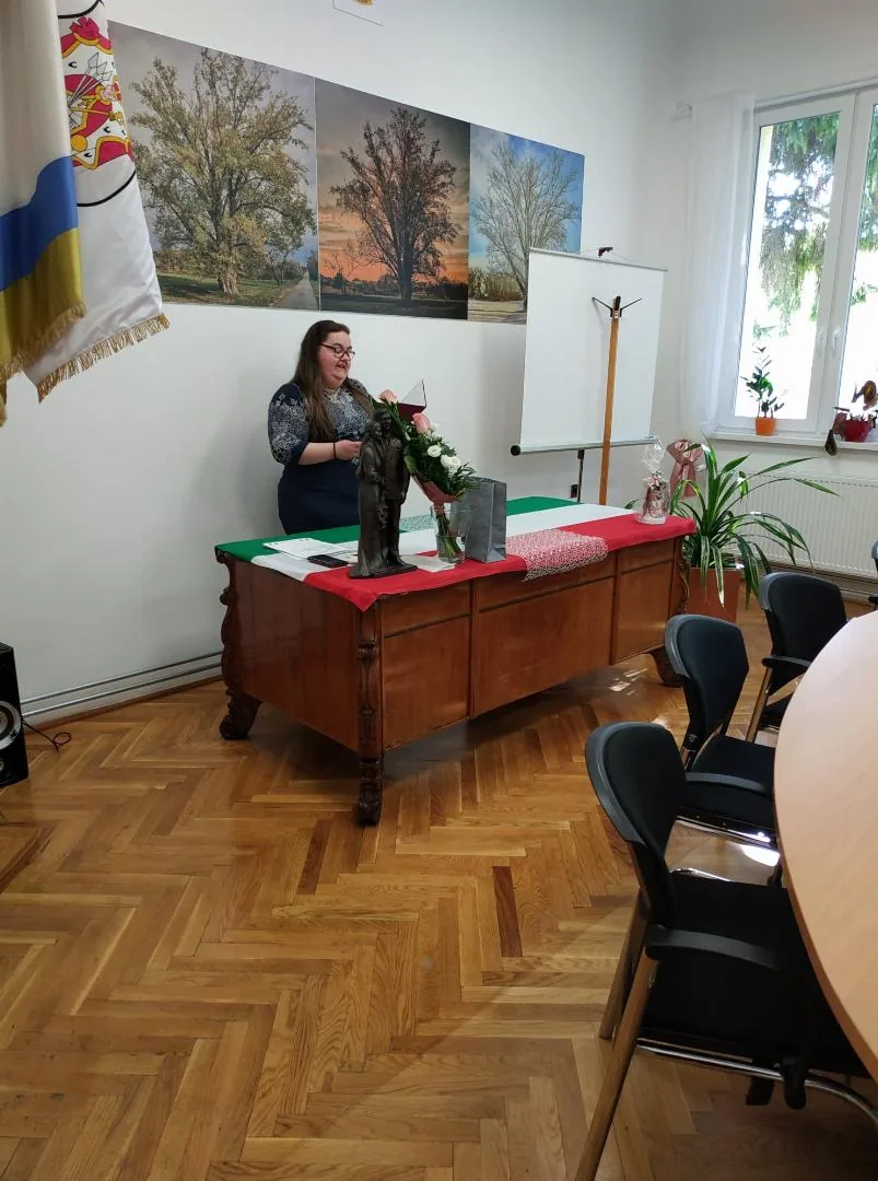 Az eskütétel után Hullám Annamária anyakönyvvezető köszöntötte az eskütevőt.