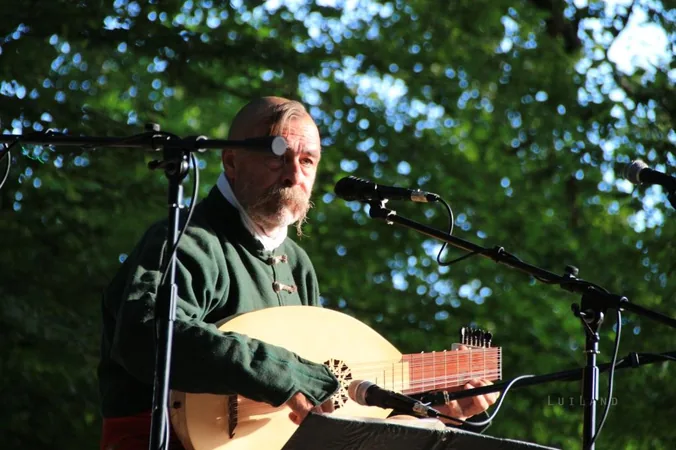 A fotón Kátai Zoltán magyar Tinódi-lant díjas énekmondó látható.