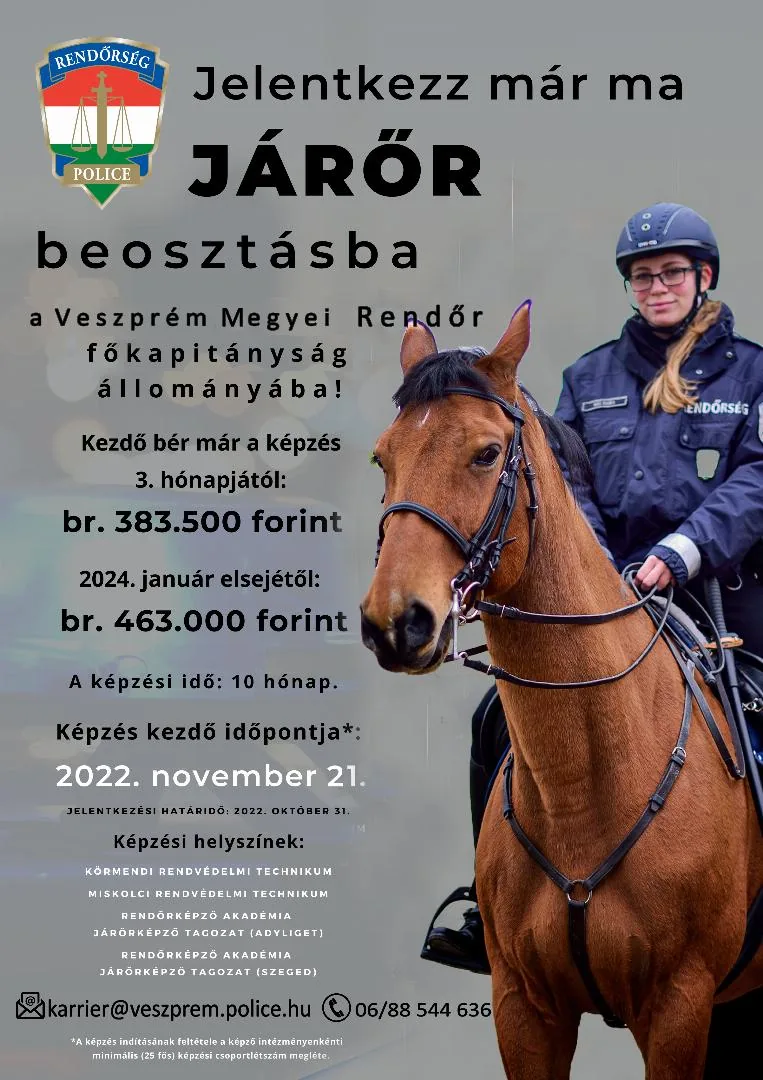 Jelentkezz már ma járőr beosztásba a Veszprém Megyei Rendőr Főkapitányság állományába!