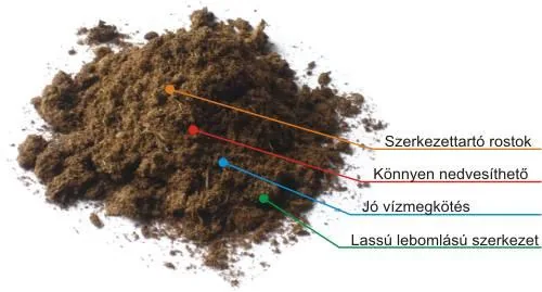 A tápanyagokkal dúsított tőzeg. Az üdülőterületi belterületi - főként kisebb - gyümölcsöskertek kedvelt szerves trágyája. Ez javítja a talaj fizikai szerkezetét és egyúttal táplálja is a fákat. Nagy víztartó képessége miatt a talajok vízháztartását egyenletessé teszi (ez nagy előny, mert a tőzeggel trágyázott talaj egyik vasárnaptól a másikig tartja a nedvességet).