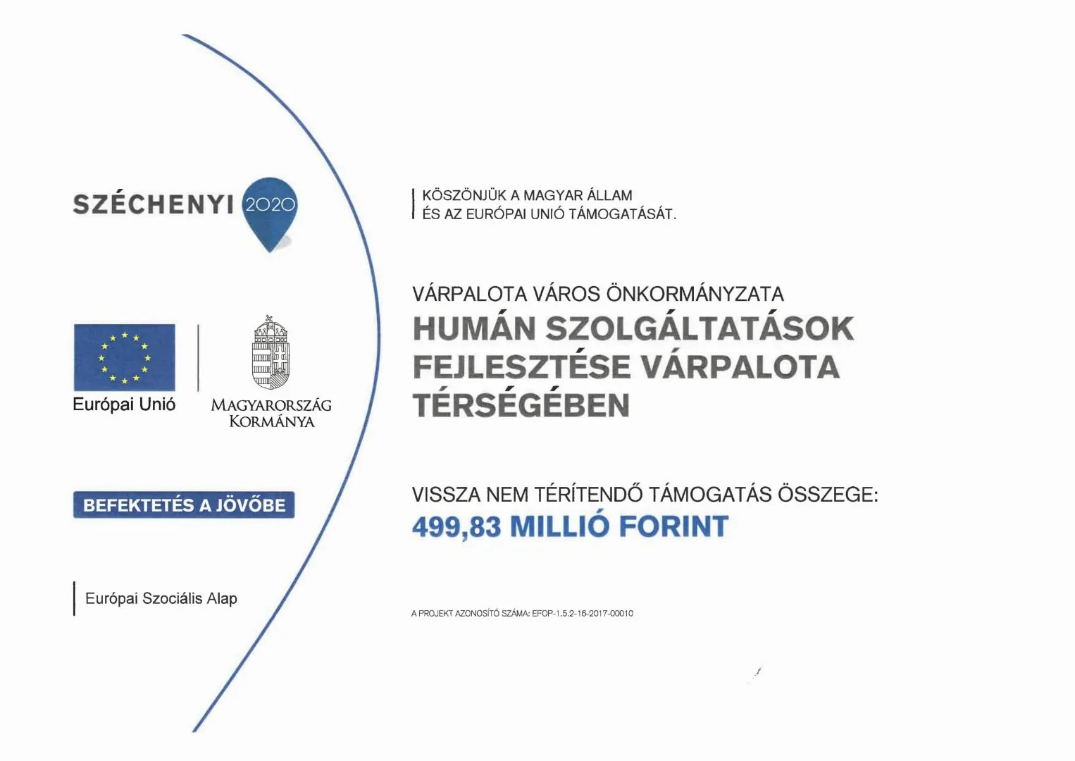 A projekt címe: Humán szolgáltatások fejlesztése Várpalota térségében